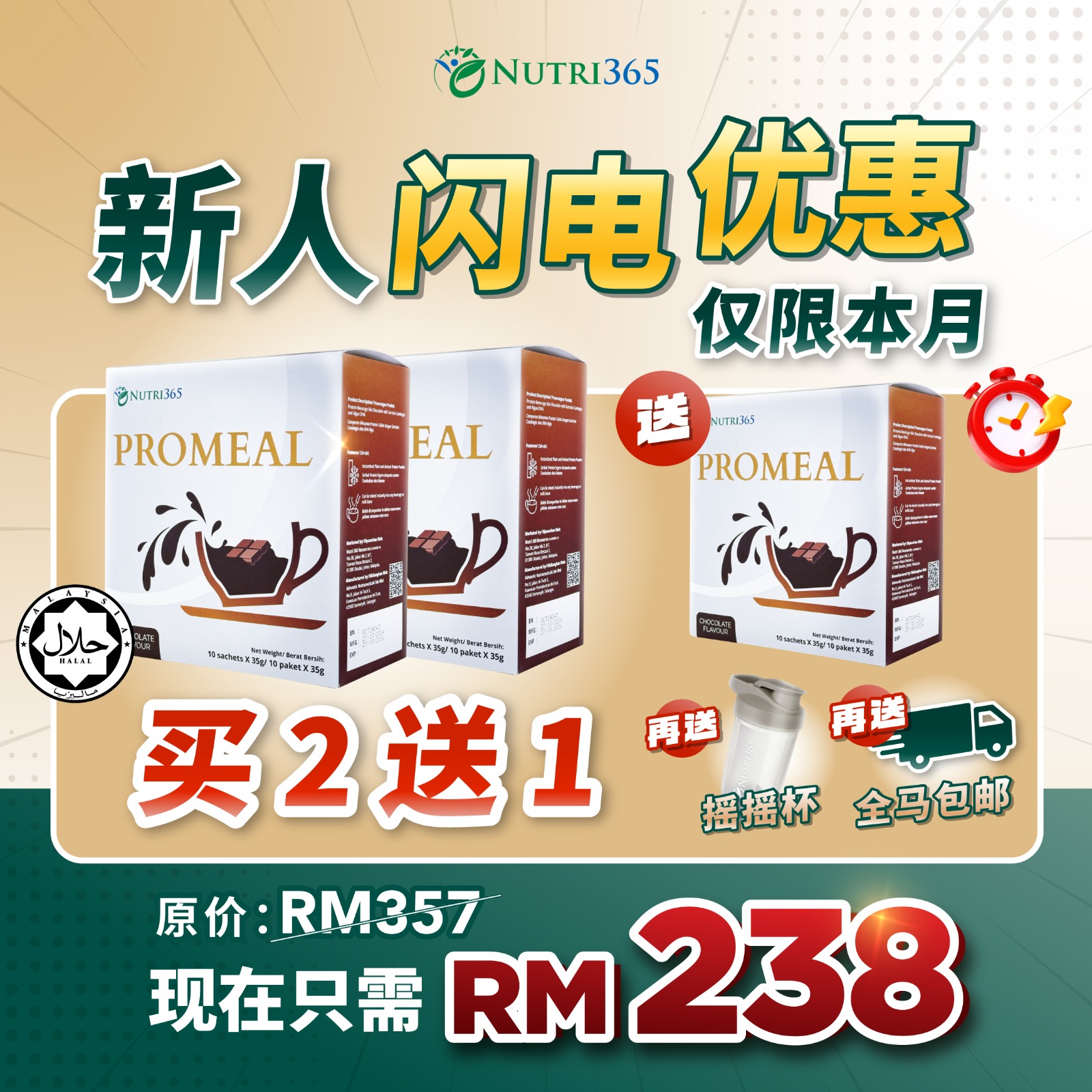 Mix 1 sachet of Promeal with cold or warm water or even milk. Stir or shake well and serve.