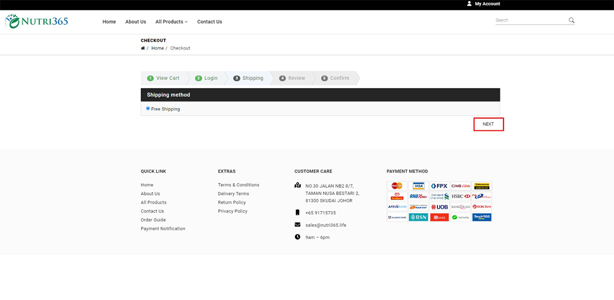 Choose your shipping method. Then click "Next" button to proceed.